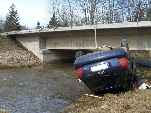 3. aprīlī ap 11.45 Tukumā automašīnas AUDI A4 vadītājs, braucot pa Durbes ielu virzienā no pilsētas centra, neizvēlējās drošu braukšanas ātrumu, kā rezultātā transportlīdzeklis saslīdēja, ietriecās Slocenes tilta margās un piezemējās uz jumta pārplūdušās upītes otrā krastā. Vadītājs nopietnas traumas nav guvis. Notikuma apstākļus izmeklē policija.