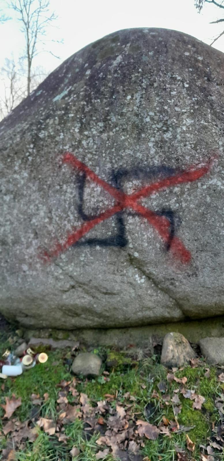 Fakts, ka jau 29. janvārī ar krāsu tika apliets Piemiņas akmens Kurzemes cietokšņa aizstāvjiem Džūkstes «Rumbās», īpaši netika publiskots, taču ziņa, ka vainīgais – Igaunijas un Krievijas pilsonis – tagad aizturēts, gan ir izskanējusi.