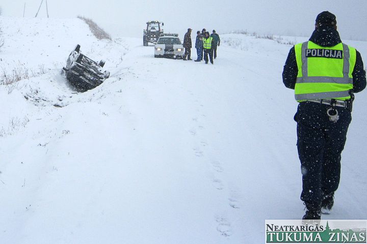 19.00 Tumē, Rīgas-Ventspils ceļa 66. km, kāds 1953. gadā dzimis vīrietis ar automašīnu CHRYSLER VOYAGER ieslīdējis grāvī. Cietušo nav.