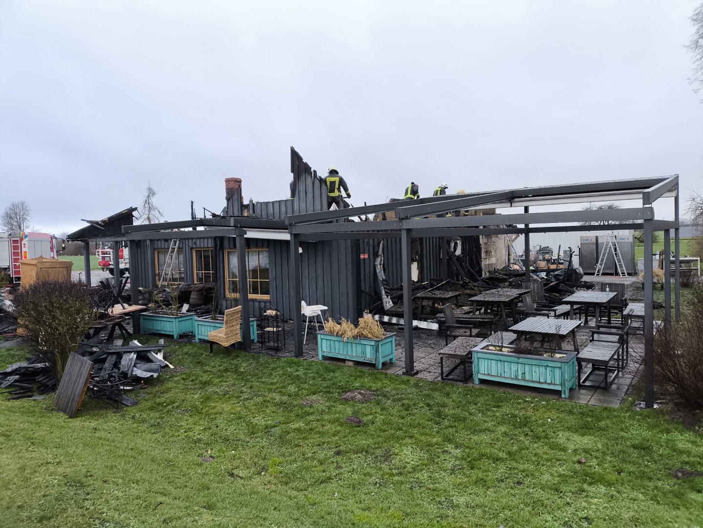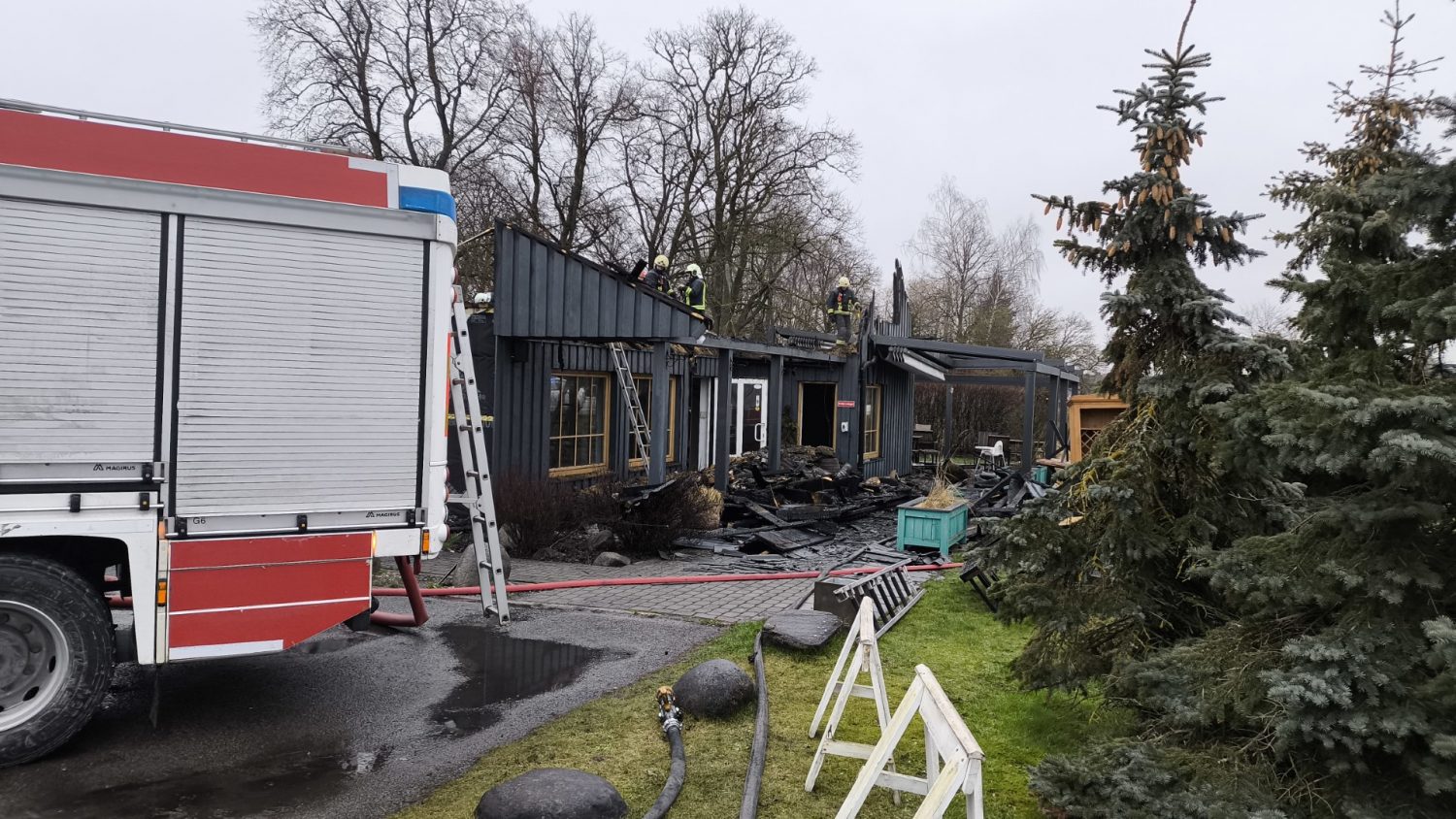 Dzēšanas darbos iesaistītājās arī Smārdes un Engures brīvprātīgie ugunsdzēsēji. Neilgi pirms septiņiem no rīta šī paaugstinātā bīstamības ugunsgrēka izplatīšanās ierobežota, bet konstrukciju jaukšanas un liešanas darbi arvien turpinās.