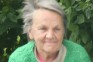 Ģērbusies: zilas krāsas džemperī ar sudraba diega adījumu, melnās sporta biksēs, kājās melni gumijas zābaki, brūns lakats ar puķēm, līdzi paņemts balts plastmasas spainis.