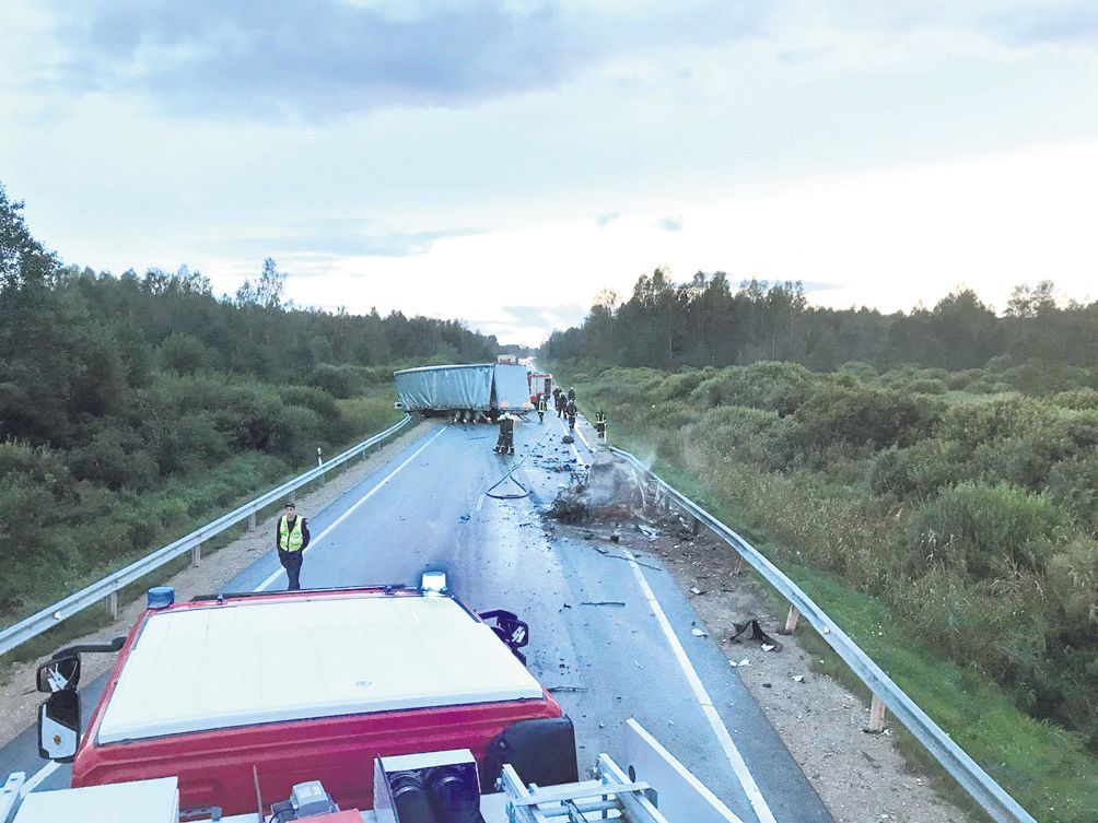 20.02 Tukuma novada Džūkstes pagastā, ceļa Rīga-Liepāja 46. kilometrā, 1972. gadā dzimušais vadīja kravas seglu vilcēju «DAF» savienojumā ar puspiekabi «Kogel» virzienā no Liepājas uz Rīgu. Šobrīd nenoskaidrotu apstākļu dēļ pretējā joslā iebrauca automašīna «SAAB 9-5», ko vadīja 1990. gadā dzimis vīrietis, kā rezultātā notika sadursme un vieglā automašīna pēc avārijas aizdegās. Negadījumā bojā gāja «SAAB» vadītājs. Šobrīd ir uzsākts kriminālprocess un nozīmētas ekspertīzes, lai noskaidrot negadījuma apstākļus.