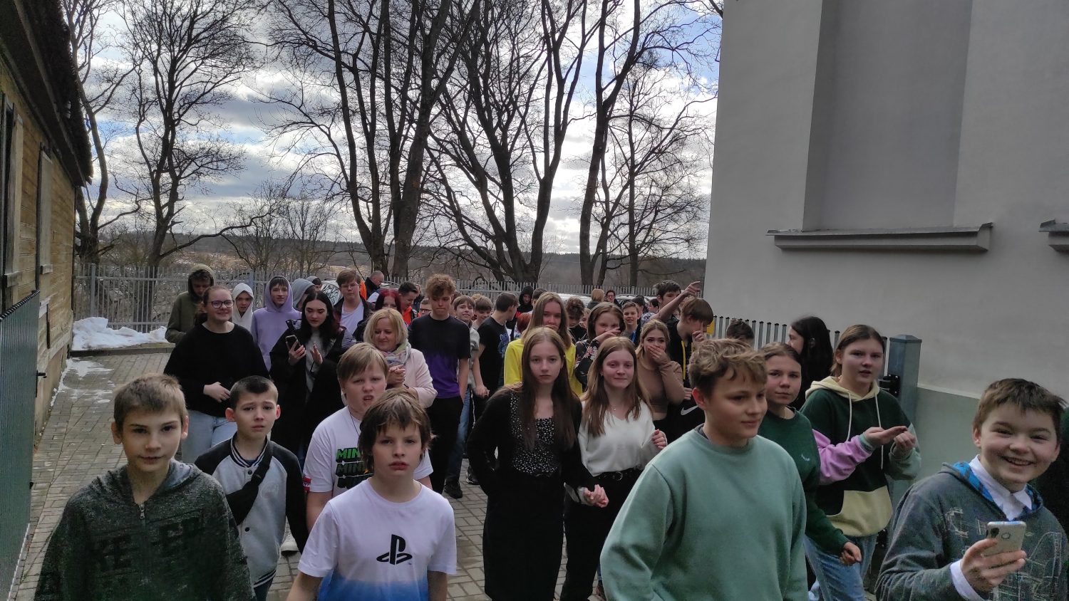 Skolotājas izskatās ka ir īpaši uztraukušās par evakuāciju.