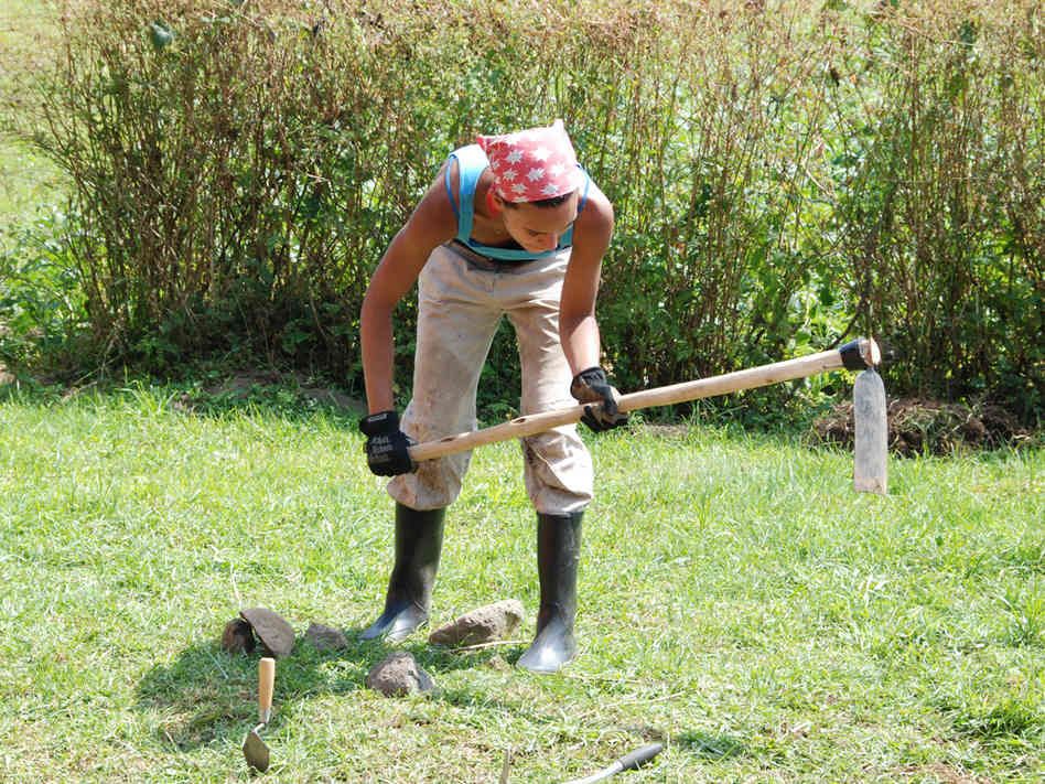Zentenē nozog gumijas zābakus un cirvi