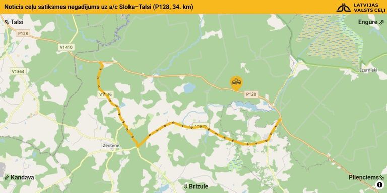 Šodien, 28. augustā Valsts policijā saņemta informācija, ka Tukuma novadā, Tumes pagastā uz autoceļa «A10» noticis ceļu satiksmes negadījums. Sākotnējā informācija liecina, ka sadursme notikusi starp trim automašīnām – diviem vieglajiem transportlīdzekļiem un vienu kravas transportlīdzekli. Negadījumā cieta vieglās automašīnas vadītājs, kurš nogādāts medicīnas iestādē. Otras vieglās automašīnas vadītāja notikuma vietā zaudēja dzīvību. Operatīvie dienesti turpina skaidrot negadījuma apstākļus.