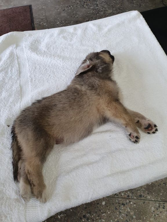Meklē suņa saimnieku, kurš Džūkstes pagastā koka kastē pametis kucēnus