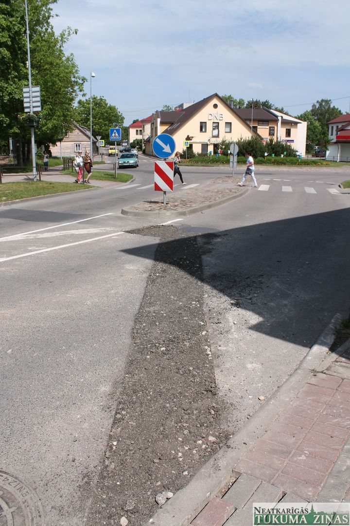 Redakcija: Tukuma novada domes komunālās nodaļas vadītājs Ģirts Ruģelis skaidroja – cik viņam zināms, šais vietās rakšanas darbus veica SIA «Telms» un SIA «Infonet», kam arī bija uzdots šīs vietas sakārtot. Viņš solīja, ka tuvākajā laikā tas arī tiks izdarīts. Vaicāts, vai nebūtu iespējams domē noteikt tādu kārtību, ka katra rakšanas darbu vieta pēc sakārtošanas kādam no domes komunālās nodaļas ir jāatrāda, Ģ. Ruģelis skaidroja, ka rakšanas darbu atļauja šādu pienākumu uzliek, taču tiek domāts par to, lai visu šo sistēmu sakārtotu un šādu gadījumu, kad ilgstoši bruģis nav kārtīgi atlikts atpakaļ vai bedres aizbērtas, nebūtu.