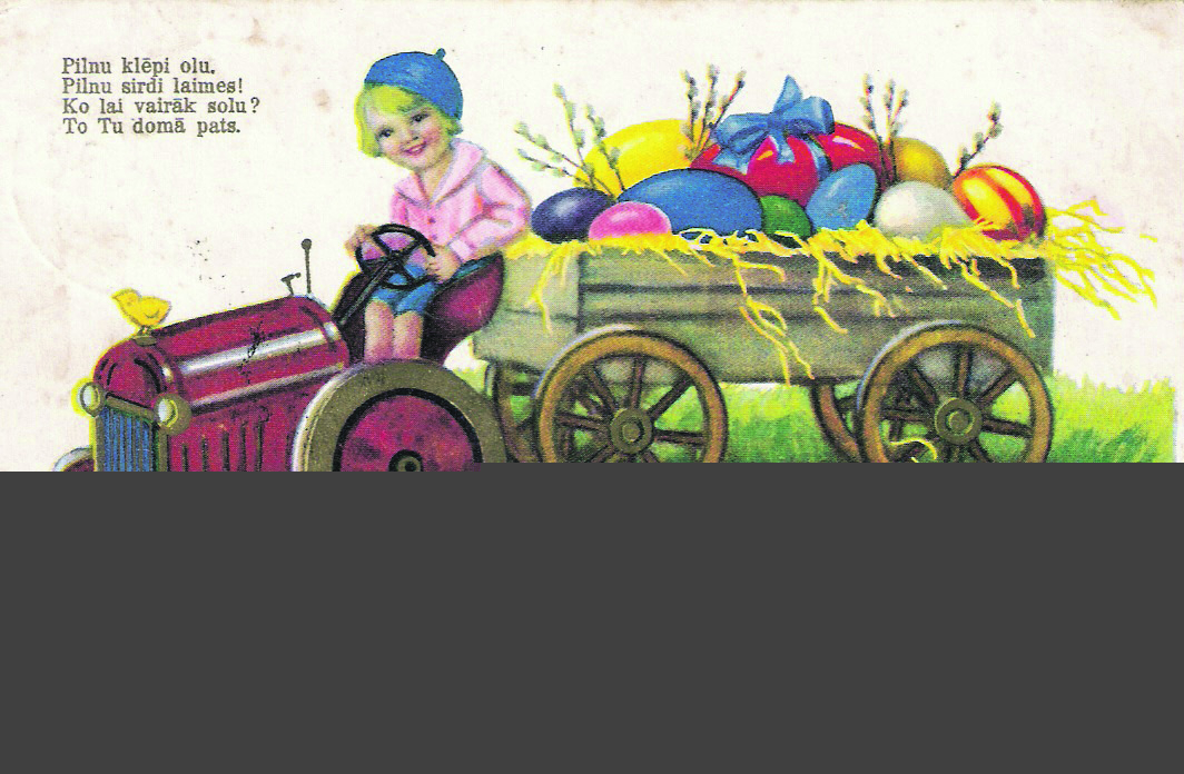 Apsveikuma kartiņas ar mīļiem vārdiem, tautas dziesmām un nelielām vēstulītēm īpaši raksturīgas bija 20. gadsimta 20. un 30. gados. Kā kartiņu zīmējumi bieži tika izmantoti raksturīgie Lieldienu simboli: zaķis ar olu grozu, no olām izšķīlušies cālīši, pavasara ziedi un tikko izplaukuši zariņi. Nereti šos zīmējumus veidoja pazīstami mākslinieki. Tika izmantotas arī fotogrāfijas.