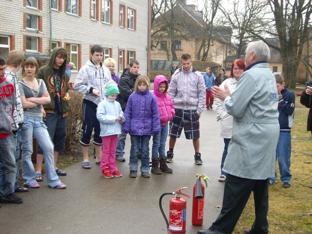 Visbeidzot arī bija iespēja pedagogiem un jauniešiem gūt praktisku pieredzi, kā rīkoties ar ugunsdzēšamo aparātu. Praktiskajās apmācībās tika aizdedzināta panna ar degvielu un to vajadzēja nodzēst, ar ko pedagogi un jaunieši ļoti labi tika galā.