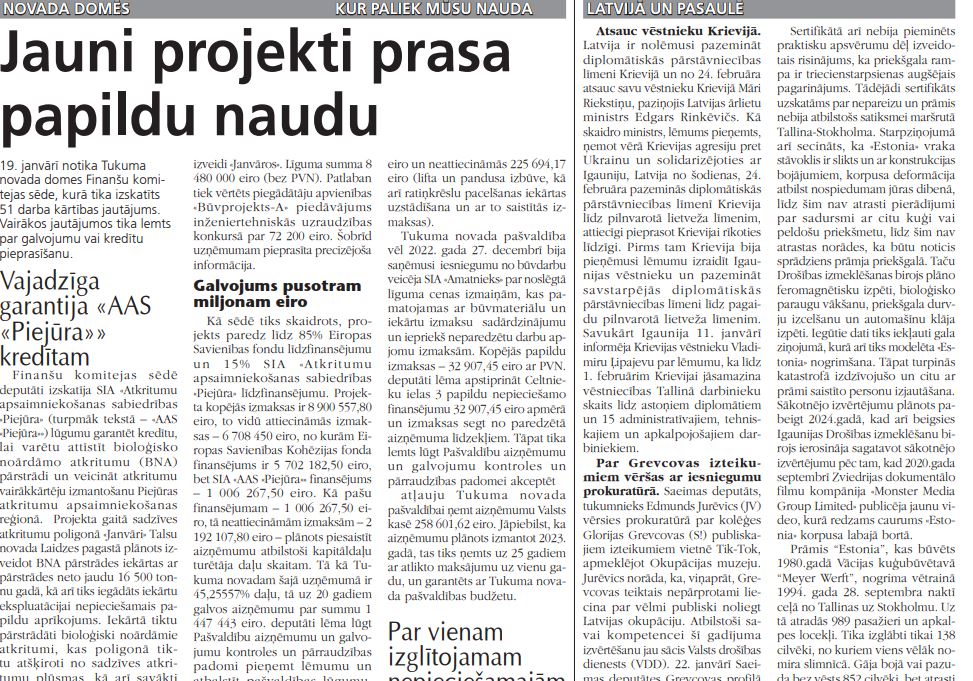 P.S. Galīgo lēmumu deputāti rakstā minētajos jautājumos pieņems domes sēd, kas notiks 26. janvārī.