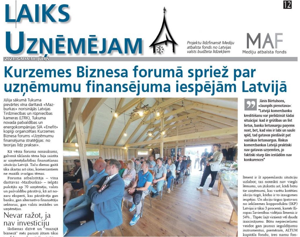 Mediju atbalsta fonda ieguldījums no Latvijas valsts budžeta līdzekļiem. Par publikāciju “Laiks uzņēmējam” saturu atbild SIA “Novadu Ziņas”. #SIF_MAF2024