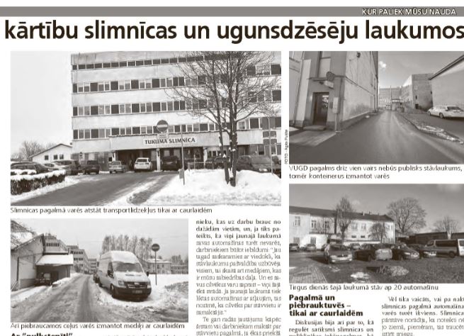Vēl iestādes vadītāja lūdza, lai stāvvietas šīs iebrauktuves kreisajā pusē (ja ar skatu pret 2. vidusskolu) būtu atstājamas mediķiem, – ar caurlaidēm, savukārt pie ieejas slimnīcā būtu nosakāmas četras vietas, kur piebraukšana būtu vien operatīvajam transportam. Tas nozīmētu uzlikt atbilstošas ceļa zīmes uz ēkas sienas, taču neizslēgtu iespēju, piemēram, uz piecām minūtēm piebraukt kādam, kam jānogādā pacients Uzņemšanas nodaļā.”