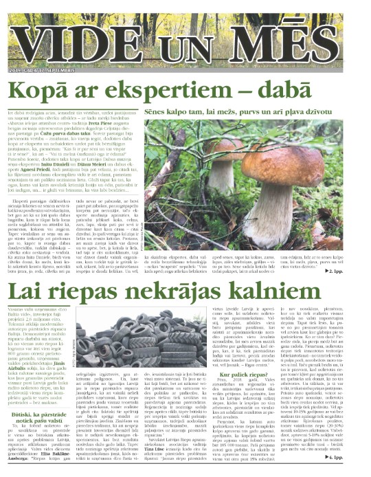 Kopā ar dabas ekspertiem pētām meža veltes – ēdamas un neēdamas sēnes, indīgus, mazāk indīgus un ēdamus augus un ogas. Kopā ar Bauskas un Aizkraukles žurnālistiem vērtējam, kas jādara, lai auto riepas nekrātos kalnos. Raksti tapuši ar «Vides aizsardzības fonda» finansējumu un «Abavas ielejas attīstības centra» atbalstu.