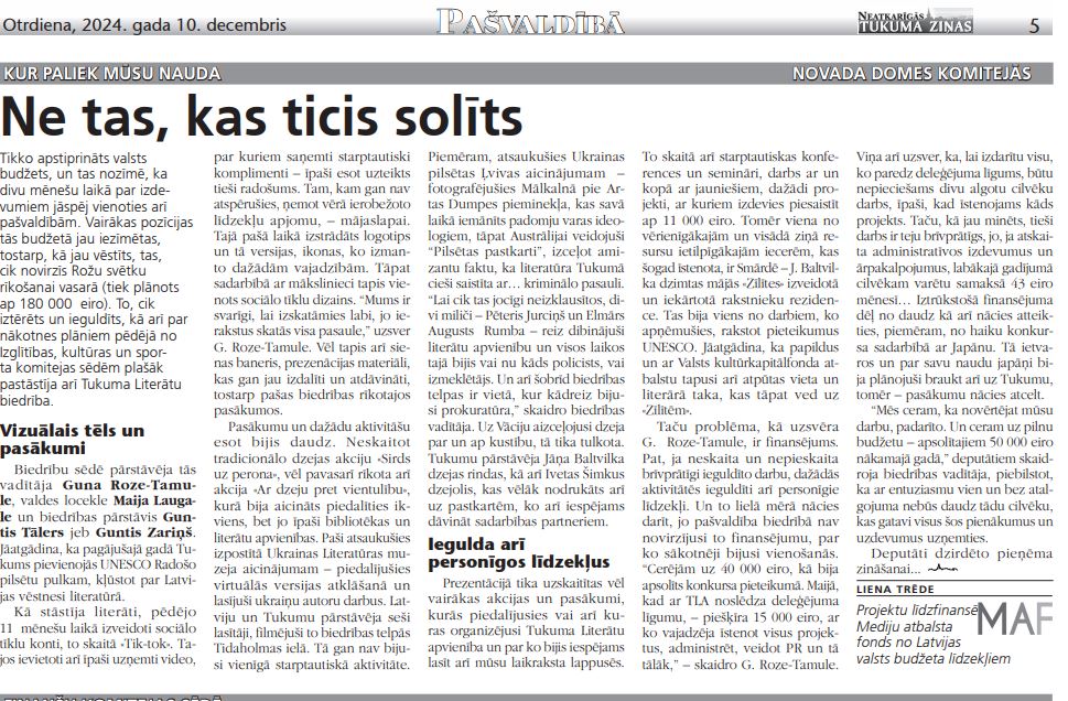 Mediju atbalsta fonda ieguldījums no Latvijas valsts budžeta līdzekļiem. Par publikāciju “Kur paliek mūsu nauda?” saturu atbild SIA “Novadu Ziņas”. #SIF_MAF 2024