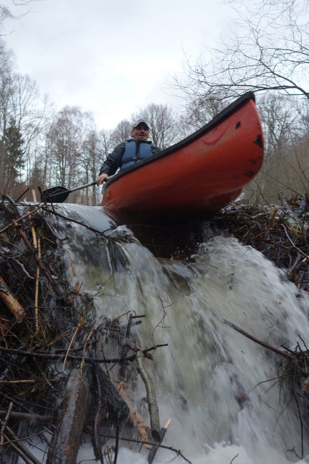 Bebrs ir labs būvnieks, viņa veidotu dambi izjaukt nav nemaz tik viegli. Nākas kārtīgi saslapināties, līdz ceļš atkal brīvs un iesāktais brauciens ar laivu turpinās.