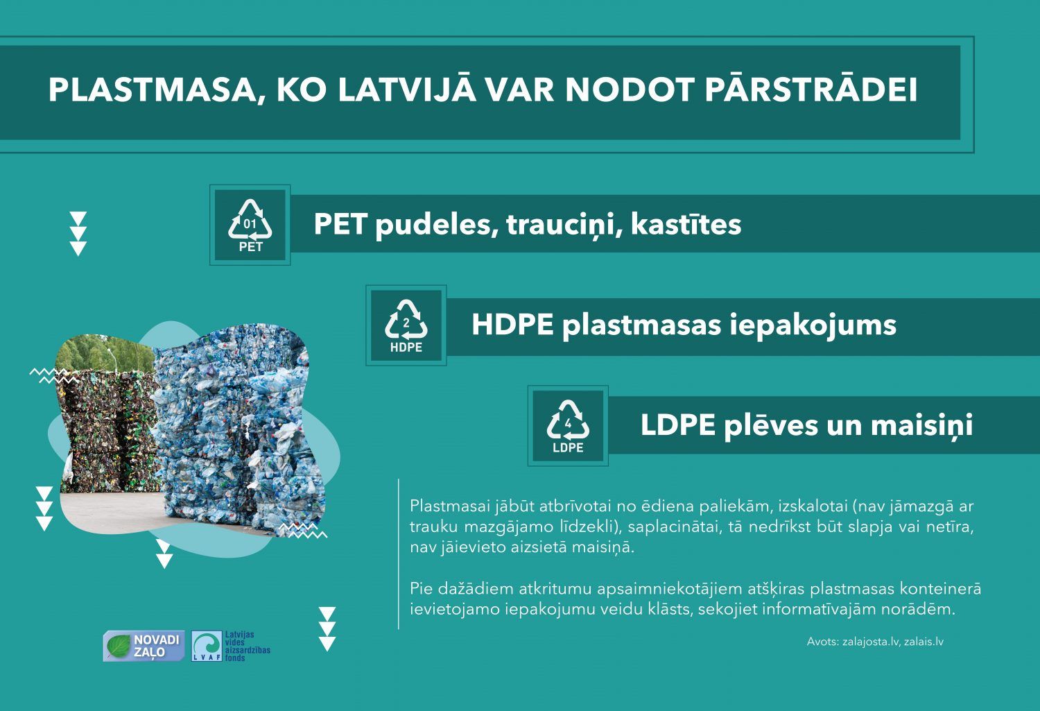 Ne visa vieglā plastmasa ir pārstrādājama; pārskatot savu šķirojamo atkritumu kasti, atklājas, ka tikai viens no materiāla ziņā līdzīgiem iepakojumiem ir derīgs pārstrādei – ar marķējumu “LDPE 4”.
