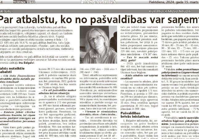 Kādu sociālo atbalstu no pašvaldības iedzīvotāji var saņemt – atbildi uz šo jautājumu meklējām sarunā ar Tukuma novada sociālā dienesta vadītāju Inu Balgalvi.