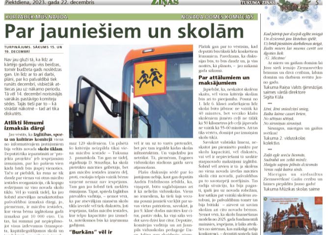 Atgādinām, ka šī gada pēdējā domes sēde, kur gan par skolu tīklu vēl nerunās, notiks nākamnedēļ, 28. decembrī.