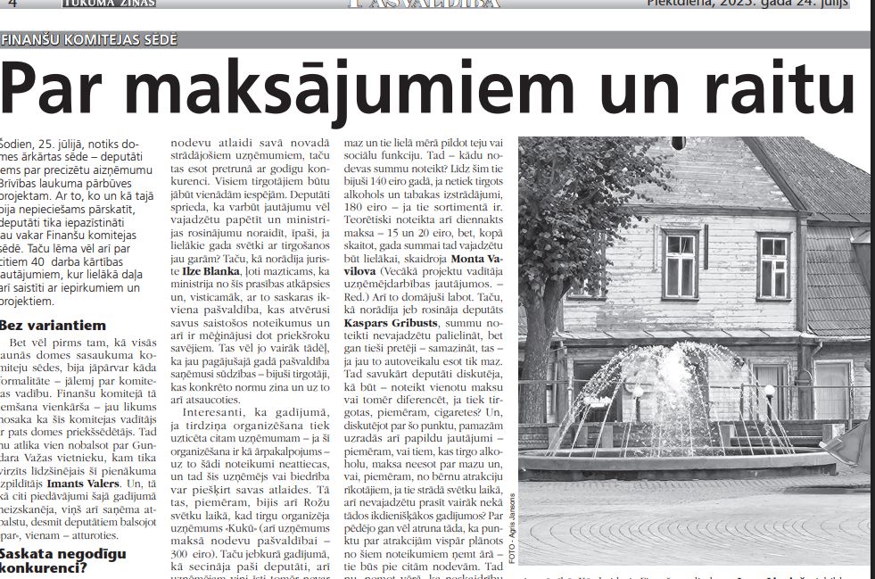 Necerēti plašas izvērtās diskusijas par pašvaldības saistošajiem noteikumiem, kas regulē ielu tirdzniecību novadā. Pašus noteikumus jau iepriekšējā sasaukuma deputāti bija paspējušu pieņem šī gada aprīlī. Tomēr, kā izrādās, nu saņemti iebildumi no ministrijām, proti, Viedās administrācijas un reģionālās attīstības ministrijas, bet jo īpaši – no Ekonomiskas ministrijas. Galvenais punkts, ko liek pārstrādāt, – pašvaldība paredzējusi nodevu atlaidi savā novadā strādājošiem uzņēmumiem, taču tas esot pretrunā ar godīgu konkurenci. Visiem tirgotājiem būtu jābūt vienādām iespējām. Deputāti sprieda, ka varbūt jautājumu vēl vajadzētu papētīt un ministrijas rosinājumu noraidīt, īpaši, ja lielākie gada svētki ar tirgošanos jau garām? Taču, kā norādīja juriste Ilze Blanka, ļoti mazticams, ka ministrija no šīs prasības atkāpsies un, visticamāk, ar to saskaras ikviena pašvaldība, kas atvērusi savus saistošos noteikumus un arī ir mēģinājusi dot priekšroku savējiem. Tas vēl jo vairāk tādēļ, ka jau pagājušajā gadā pašvaldība saņēmusi sūdzības – bijuši tirgotāji, kas konkrēto normu zina un uz to arī atsaucoties.