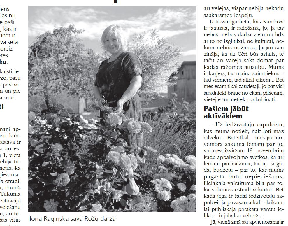 Vēl par vēlēšanu aktivitāti runājot, cilvēki par reformu bija diezgan skeptiski jau no paša sākuma, tāpēc jau runāja par to, ka nevēlas iet uzvēlēšanām. Bet atceros, kā kādreiz visi gatavojās vēlēšanām – tie jau bija veseli svētki!… Sapucējušies cilvēki devās uz pagasta centru, tur bija īsta ballīte. Bet nu tiem, kas dzīvo tālāk no centra, bija jautājums, kā lai tiek uz šīm vēlēšanām un atpakaļ? Es jau teicu, ka var pieteikties arī, lai varētu mājās nobalsot. Jā, Kandavā vēlēšanu aktivitāte bija lielāka nekā Tukumā, bet salīdzinoši jau, kopumā uz vēlēšanām aizgāja maz. Ir sajūta, ka cilvēki ir noguruši no politikas un biežās varas maiņas, no biežajām reformām – gan no teritoriālās, gan arī tagad no nodokļu reformas. Tāpēc, manuprāt, cilvēki ir ieņēmuši tādu pozīciju: priekš kam mums ir jāiet vēlēt?! Vēl pensionāri, ar kuriem man bieži sanāk kontaktēties, šajās vēlēšanās bija ļoti neaktīvi, nebija daudz tādu, kas iedegtos un teiktu: ”Jā, noteikti iešu vēlēt!” Ir daļa, kas uzskata, un es viņiem arī pievienojos, ka mēs – iedzīvotāji – domē daudz darīšanas nekārtojam – ir iespēja visu izdarīt elektroniski.