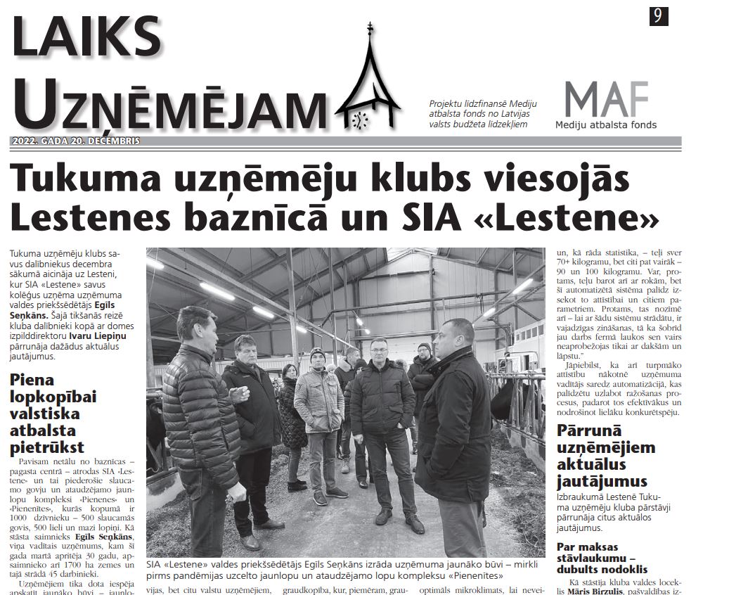 Izbraukumā Lestenē Tukuma uzņēmēju kluba pārstāvji pārrunāja citus aktuālos jautājumus.