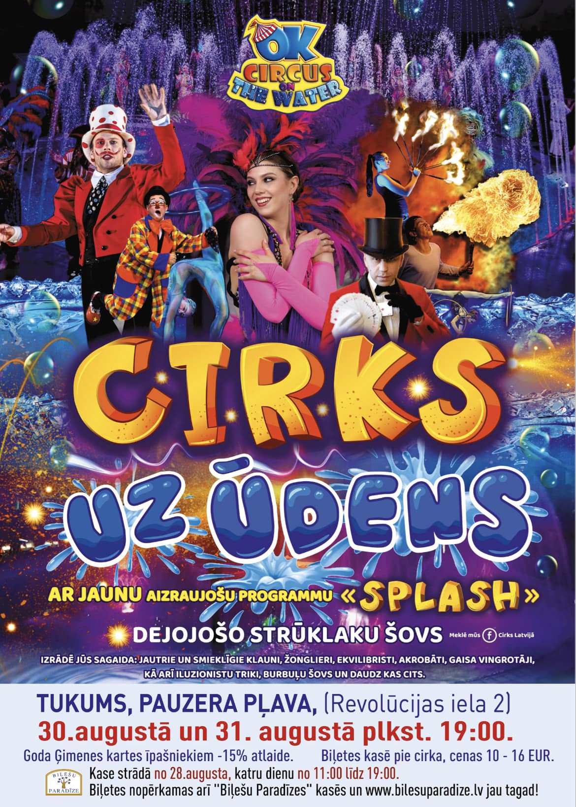 Nenokavē, cirka programma «SPLASH» tavā pilsētā būs skatāma pavisam neilgi! Esi mīļi gaidīts cirkā uz ūdens!