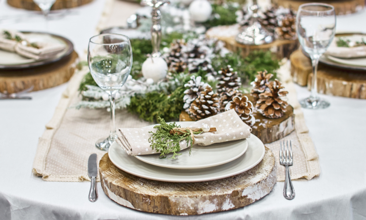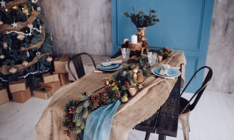 Lauku šiks jeb eko-stils. Viss jaunais ir labi aizmirsts vecais. Tradicionālās vērtības ir tas, kas sniedz īpašu nostalģijas sajūtu. Ja esat noguruši no pilsētu ritma un pārbagātības, kāpēc gan nenoformēt savu galdu lauku stilā? Galu galā tas izcili atbilst arī latviešu tradicionālajiem ēdieniem! Lina galdauts un salvetes ar ziemas motīvu izšuvumiem, māla podiņš ar karstu smaržīgu sautējumu, koka vai retro stila svečturi ar garām baltām svecēm aizkustinās jūsu dvēseles stīgas un sniegs brīnuma gaidīšanas sajūtu gluži kā bērnībā. Papildiniet to visu ar pušķiem no smaržīgiem priežu zariem vai nelielu eglīti podiņā. Piedāvājiet saviem ciemiņiem mīkstus pledus un relaksējoša, intīma gaisotne tā vien pavedinās uz sirsnīgām sarunām!