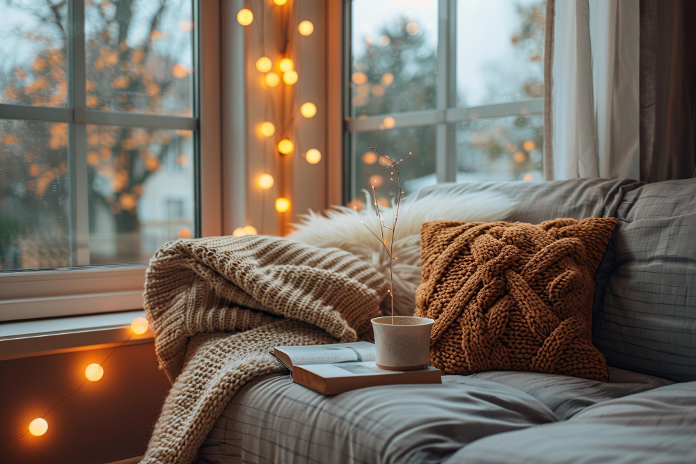 Labā alternatīva ir siltā gaisma stūros un punktveida avoti. Viens gaismas avots blakus krēslam rada vairāk mājīguma nekā griestu lustra ar 1200 lūmeniem. Vēl viena ideja ir izmantot Ziemassvētku dekorus ar siltu mirdzumu — tie darbojas kā dekoratīva gaisma un rada noskaņu.
