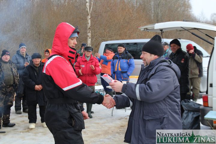 Sacensībās bija pieteikušies un uz ledus uzkāpuši 38 dalībnieki – no Irlavas, Jaunpils, Jaunsātiem, Ozolniekiem, Tukuma, Sēmes, kā arī no Rīgas. Sacensībās 1. vietu ieguva Artis Akmanis no Tukuma ar 1.43 kg loma kopsvaru, 2. – Mārtiņš Ozoliņš no Jaunpils (1,428 kg), 3. – Juris Vēveris no Tukuma (1,218 kg). Aplūkojot kopējo tabulu, var secināt, ka no Bišpēteru ūdens krātuves tika izmakšķerēti aptuveni 10 kg zivju.