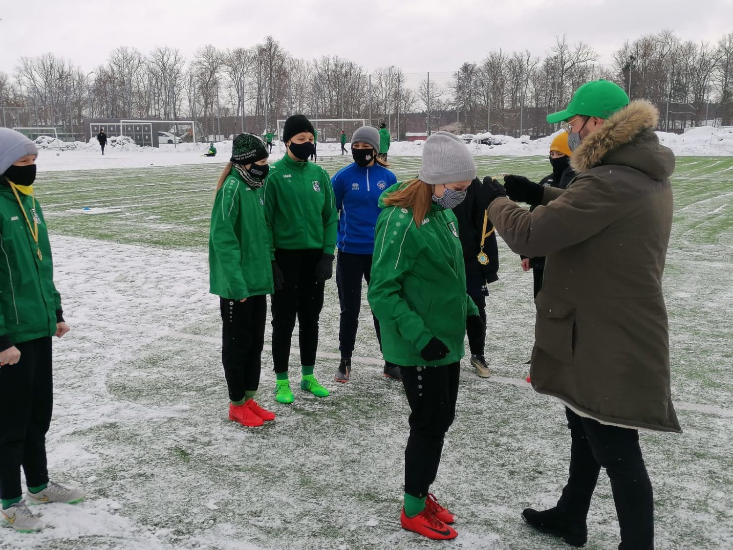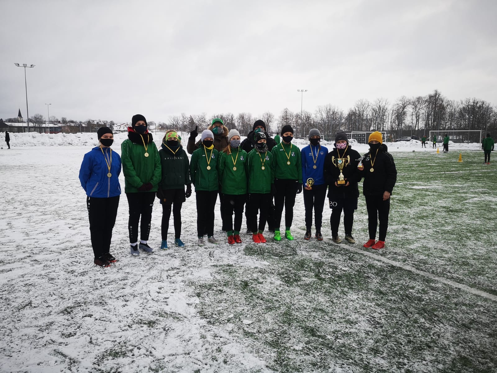 Savus apbalvojumus dāmas saņēma pagājušās nedēļas nogalē, 30. janvārī, Pauzera pļavās, sijājot sniedziņam un pieturoties gana pamanāmam salam. Medaļas meitenēm pasniedza Tukuma futbola kluba prezidents Verners Akimovs. Jāatgādina, ka dalību čempionātā jaunās futbolistes uzsāka ar spēli pret SK «Kuorsova», kurā tika piedzīvota uzvara ar rezultātu 3 – 1; tam sekoja spēle, kurā tika izcīnīta nepārprotama uzvara pār Ilūkstes novada sporta skolu ar rezultātu 8 – 0; bet tālāk… vēl nopietnākas uzvaras, turpinot atstāt citu meiteņu komandas bez punktiem. Pret FK33/Ķeguma skolu rezultāts 18 – 0; Rīgas futbola skolas 2. komandu – 6 – 0; FA «Ventspils» – 5 – 0. Pusfinālā tukumnieces stājās pretī komandai no Jelgavas – FS «Jelgava», un tāpat – bezatbildes uzvara (rezultāts 4 – 0). Par labāko FK «Tukums 2000» spēlētāju šajā sezonā atzīta Loreta Želve, bet par visa turnīra labāko spēlētāju atzīta Madara Štipenbaha.