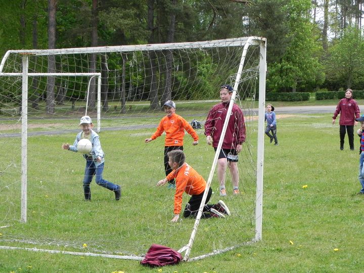 Pēc sportiskām aktivitātēm sekoja pikniks Abavas krastā turpat blakus sporta klubam. Varētu domāt, ka visi steidza cept desiņas un gaļu?! Nē, sporta aktivitātes turpinājās futbola laukumā un vēl pat vēlā pēcpusdienā – volejbola laukumā. Jāteic, ka ir tik patīkami, ka tāds mazs Latvijas stūrītis ir glīti sakopts un piedāvā gana plaši izbaudīt dažādus sporta veidus.