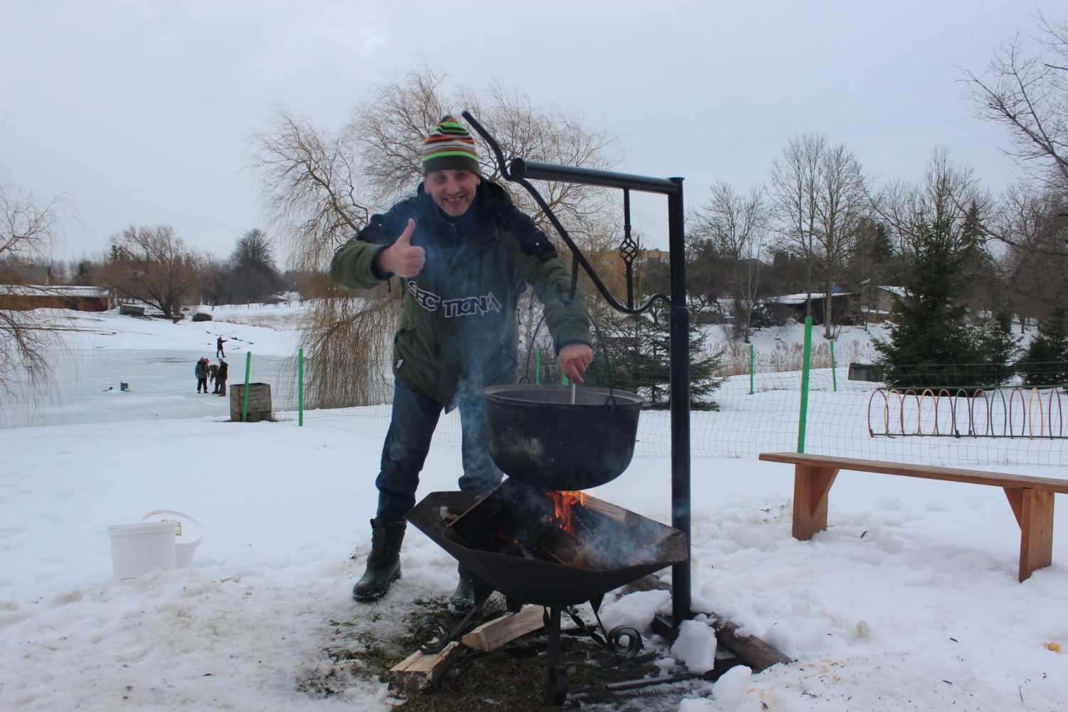 Tūlīt pēc svēršanas un sveikšanas sekoja dalībnieku sarunas, baudot turpat ārā vārīto zupu, kuru bija pacentusies pagatavot Ilze Pētersone.
