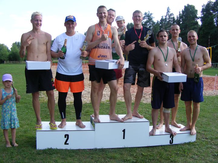 Arī vīriem, lai noskaidrotu kopvērtējuma uzvarētājus, nācās izmantot visus nolikumā paredzētos kritērijus. Pirmajā vietā «Brāļi» no Saldus (Ainārs, Edgars un Oskars Tiļļas), 2. – «Dobele» – Kristaps Sosnarevs un Elvijs Taujenis), bet 3. – «Engure» – Rūdolfs Ozoliņš, Armands Griķis un Kristaps Šmeliņš).