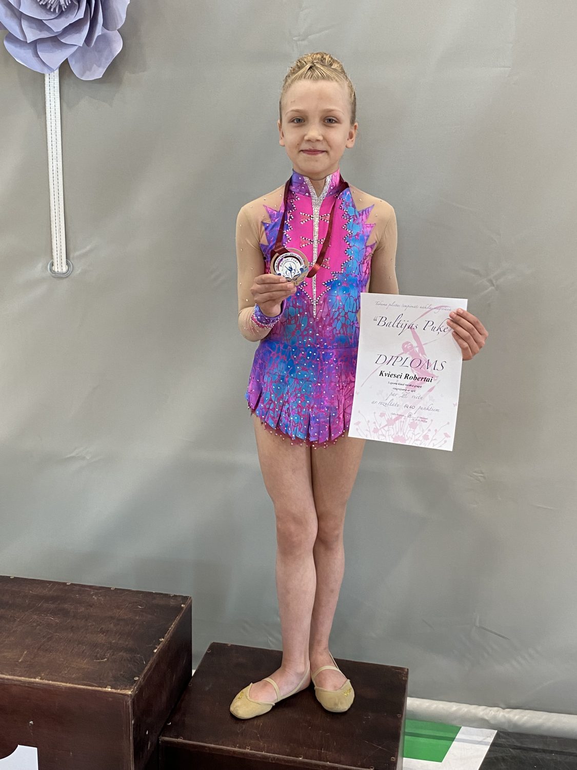 Labākos rezultātus sasniedza: Anastasija Skvorcova, kurai 3. vieta daudzcīņā un 1. vieta vingrojumā ar bumbu (5. sporta klase); Roberta Kviese – 3.vieta vingrojumā bez priekšmeta (3. sporta klase).