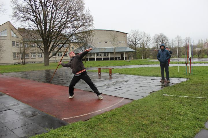 Lai kā arī tiesneši un sportisti cerēja, ka laika apstākļi uzlabosies, notika pretējais – tie pasliktinājās, pamatīgi lija un pūta stipras vēja brāzmas… Katrā ziņā neatceros, kad Tumē tik nelabvēlīgi laika apstākļi būtu bijuši 18 gados, kopš rīkojam šīs sacensības! Tomēr paldies visiem sportistiem, treneriem un tiesnešiem par izturību un uzrādītajiem rezultātiem, kas nemaz nebija tik slikti. Lūk, sacensību rezultāti pa vecuma grupām. «C» vecuma grupā (dzimuši 2002./2003. gadā) zēniem 1. vietu izcīnīja Aleksandrs Pašulis no Tumes, raidot šķēpu 25,18 m tālumā, viņam sekoja kandavnieki – Ralfs Zeltiņš (20,08 m) un Artūrs Jekovičs (19,29 m); meitenēm visspēcīgākā izrādījās kandavniece Ieva Stepiņa, kuras metiens – 30,26 m – pārspēja pat zēnus, viņai sekoja tumeniece Vika Linde (18,48 m) un novadniece Ketija Rozenberga (16,39 m); «B» grupā (2000./2001. g. dz.) zēniem labākie metieni padevās kandavniekiem Jānim Kazakam (30,66 m) un Arvim Zeltiņam (26,92 m); meiteņu konkurencē ar peronisko rekordu uzvaru izcīnīja Daina Belova no Platones – 29,43 m; viņai sekoja kandavnieces Dana Grauzermane (21,77 m) un Viktorija Milča (19,97 m); «A» grupas jauniešu (1998./1999. g. dz.) starpā tālākais metiens padevās Sandim Laizānam no Kandavas (34,66 m) un Maksimam Bogdanovam no Tumes (33,20 m); junioru grupā (1996./1997. g. dz.) labāko rezultātu uzrādīja Dagnis Roziņš no Platones (53,46 m), viņam sekoja kandavnieks Edgars Selezens (46,27 m) un tumenieks Edijs Oļehnovičs (40,01 m); no juniorēm tālāko raidījumu – 35,03 m – veica Liene Roziņa no Platones, aiz sevis labu gabalu atstājot kandavnieci Ketiju Benicu-Berlanu (23,36 m); vīriešu grupā (1995. g. dz. un vecāki) labākais metiens padevās Edgaram Rūtiņam no Aizputes (52,06 m), 2. – gulbēnietis Ivis Ķikusts (46,24 m), 3. – E. Selezens (42,06 m); dāmām-seniorēm (no 35 gadu vecuma) trāpīgākās izrādījās tukumnieces: 1. – Zaiga Boguža (30,77 m), 2. – Gunta Helmane (25,79 m), 3. – Jana Proņičeva (23,50 m); senioru-kungu konkurencē (vecumā no 50 gadiem) labāko sniegumu nodemonstrēja salaspilietis Ģirts Limanskis (44,34 m), 2. – tukumnieks Harijs Luščenoks (30,01 m), 3. – jaunsātnieks Andris Rūtiņš (24,63 m).