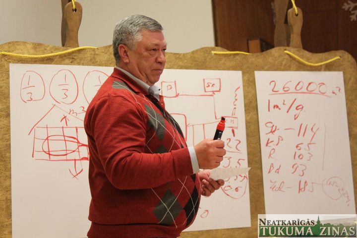 Iedzīvotāju sapulcē runāja SIA «Komunālserviss TILDe» direktors Aldis Siliņš un Slampes iecirkņa vadītājs Jānis Ambrazēvičs.