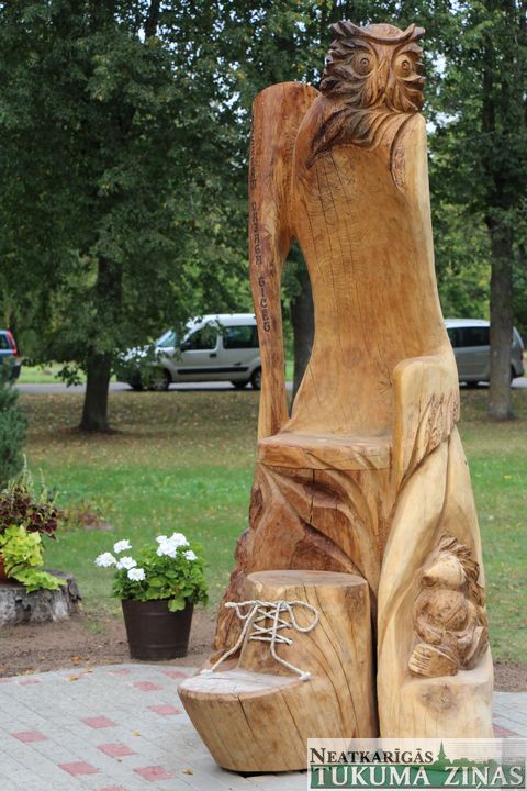 Pasākums turpinājās pie Džūkstes kultūras namu jeb bijušo pagasta biedrību namu, kura izveides rosinātājs arī bija A. Lerhs-Puškaitis. Tur tika solīts atklāt Teiku tēva darba simbolu – īpašu Pasaku krēslu. Krēslu izveidojuši Ivars un Aigars Rūrāni, kas, kā redzams, tam piešķīruši īpaši pasakainu burvību. Kā uzsvēra Tukuma novada domes priekšsēdētājs Ēriks Lukmans, iesēžoties šai krēslā, būšot iespēja piepildīt savus sapņus, jo pasaka visu pateikšot priekšā – kā un kas sapņa labā darāms.