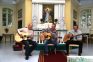 Jaunpilī nonācām brīdī, kad lietus gāza kā ar spaiņiem, taču gaisma caur Dievnama atvērtajām durvīm aicināt aicināja ienākt un sasildīties ar karsto timiāna un salvijas tēju, radošajā darbnīcā izgatavot eņģelīti un klausīties Tezē dziedājumus klarnetista Ivara Švalbes un ģitārista Anša Kluča pavadījumā.