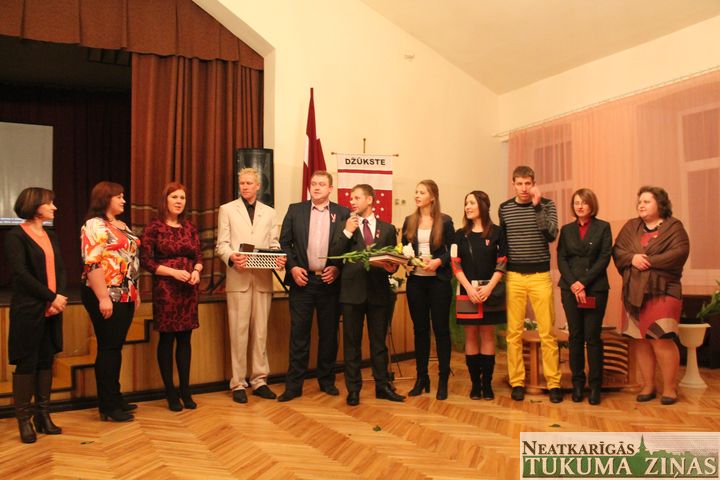 Pirmdien, 17. novembrī, Džūkstes kultūras namā pagasta ļaudis no Džūkstes, Pienavas un Lanceniekiem svinēja valsts svētkus. Jau tradicionāli valsts svētkos Džūkstē sumina aktīvus, darbīgus pagasta iedzīvotājus, kurus apbalvošanai izvirzījuši iedzīvotāji. Oļģertu Bendziku sveica par aktīvu un 27 gadu ilgu darbošanos vecākās paaudzes klubā «Rosme». Ilona Šperliņa ilgstoši darbojas jauktajā vokālajā ansamblī, pašdarbnieku saimē ievadījusi arī savus mazbērnus un apzinīgi pilda kapsētas pārraudzes pienākumus. Anita Grišāne ar lielu mīlestību audzina četrus audžubērnus. Viņa darbojas līnijdeju kolektīvā «Čilli» un pašdarbībā iesaistījusi arī bērnus. Pienavas bibliotekāre Inita Britāne katru bibliotēkā sagaida ar prieku; pamāca datorprasmēs un pacienā ar tēju. Viņa prot ieteikt labu grāmatu un palīdzēt sadzīviskās problēmās. Skolotāja Edīte Zelča spēj palīdzēt tiem, kam ir ļoti grūti, turklāt izdara to klusi un nemanāmi. Skolotāja Vaira Silta-Zīriņa spēj saturēt kopā kolēģus un bērniem iemācīt matemātiskās zināšanas, savukārt vēlēšanu dienā viņa vienmēr sagaida kopā ar savu komandu. Sandra Karstā ir labais gariņš mazajā skolā, kur katru rītu mazos sagaida un vakaros pavada; aktīva pašdarbniece – ar spēju pamudināt kolēģus mēģināt. Dita Silava aktīvi darbojas konsultatīvajā padomē, biedrībā «Džūkstei»; daudzi viņu iepazinuši Džūkstes pasaku muzejā organizētajos pasākumos. Džūkstenieks Guntis Bērziņš zina, kā un kur palīdzēt, īpaši jau talkā pie daudzdzīvokļu mājas «Rosmes». Gustavs Māliņš ir desmit gadus jauns sportists – Latvijas čempionāta individuālajā kopvērtējumā Rotax Mini Max klasē viņš ir otrais Latvijā. Džūkste lepojas ar sportistu Mareku Lavrovu – ML motokluba dibinātāju un treneri, kurš pēc ilgāka pārtraukuma un ar panākumiem sācis startēt sacensībās. Edgars Grīnbergs izveidojis mikrouzņēmumu, izmācījies par galdnieku un pierādījis, ka jebkurš koks viņa rokās pakļaujas – viņa skatījums padara lietas skaistākas. SIA «Rotas» īpašnieks Rihards Sležis ar savu darbu ir apliecinājis vēlmi mācīties, strādāt, kā arī pamanīt, kur vēl kas darāms. Viņš ir biedrības «Džūkstei» valdes priekšsēdētājs.