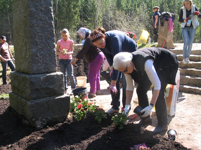 Kad piemiņas vietā ieradās talcinieki gan no Ārlietu ministrijas, gan Sēmes pagasta, V. Terliņa strādāja ar visiem kopā plecu pie pleca un ik pa brīdim pamācīja, kā kura lieta darāma. Divarpus stundu laikā, ieklausoties gan Sēmes un Zentenes pagastu pārvaldes vadītājas Silvijas Rabkēvičas iecerēs, ārlietu ministra Ģirta Valda Kristovska kā profesionāla būvnieka, Z. A. Meierovica vedeklas Ingrīdas Meierovicas un citu talcinieku padomos, tika noņemta augsnes kārta pie pieminekļa un izveidota jauna puķu dobe, kurā iestādīja turpat līdz šim augušās papardes un prīmulas, bet no jauna – sarkanas un baltas pelargonijas, notīrītas sūnas no kāpnēm un apmalītēm, izlīdzināta melnzeme un iesēta zālīte.