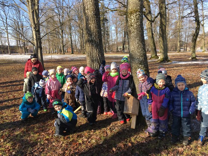 Irlavas bērndārznieki Tukuma bērnu rotaļu laukumam sagādā 23 putnu būrīšus