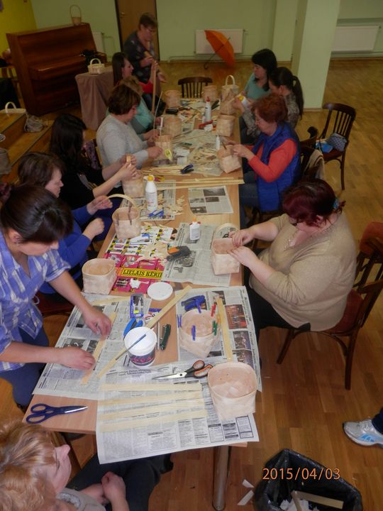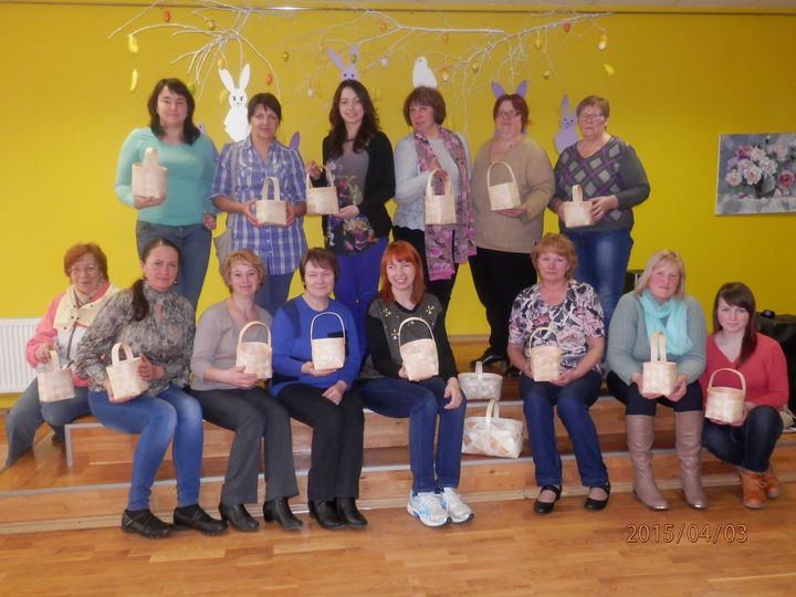 Šādas nodarbības notiek divas reizes mēnesī un tām visus materiālus sagādā biedrības «Irlavas interešu klubiņš» dalībnieces, kuras arī palīdz darbošanos organizēt. Lielajā Piektdienā kultūras namā pulcējās tās dalībnieces, kuras gribēja iemācīties pīt skalu groziņu pīšanu. Iesākumā šis darbs šķita diezgan sarežģīts, bet, kopīgi darbojoties, katra dalībniece tika pie skaista groziņa raibajām Lieldienu olām.
