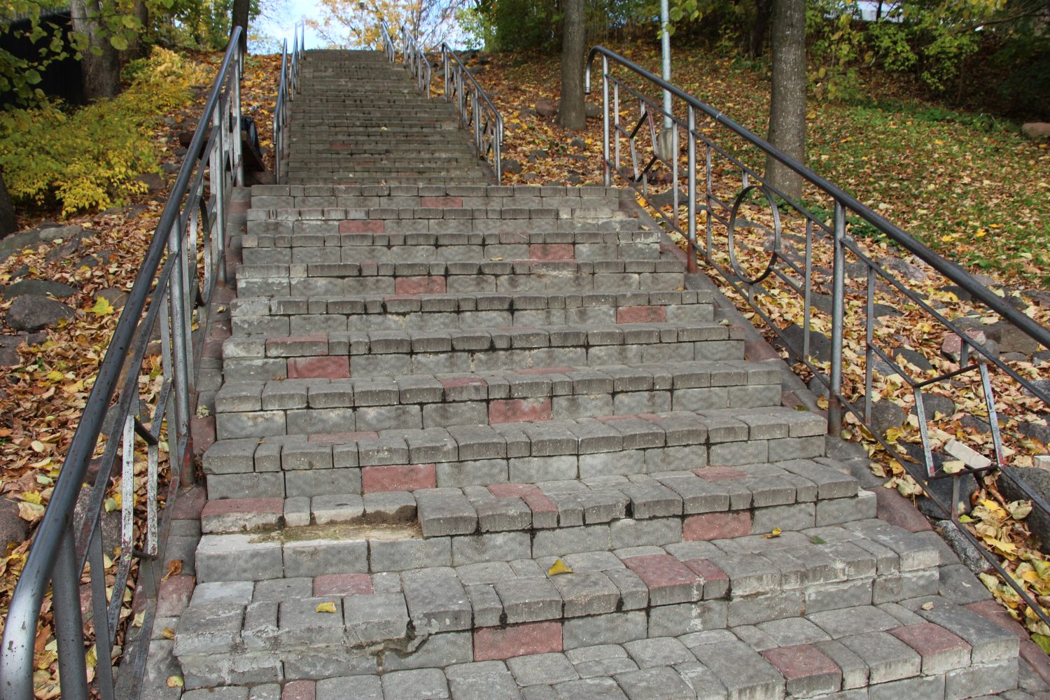 Redakcija: otrdienas, 19. oktobra, pusdienlaikā kāpnes novērtējām un secinājām, ka nedroši ir vairāki pakāpieni – dažiem trūkst viens bruģakmens, dažiem – vairāki, bet jebkurā gadījumā kritiens var sanākt pamatīgs. Tā kā tobrīd lapas bija savāktas, vietas, kur nav pakāpiena, varēja redzēt, bet jau pāris stundu vēlāk uz kāpnēm atkal bija lapas. Savukārt vakarpusē pārliecinājāmies, ka nedeg arī visas kāpņu apgaismojuma lampas. Tukuma novada pašvaldības Komunālās nodaļas vadītājs Ģirts Ruģelis skaidroja, ka ir lūdzis SIA «Strabag» iesniegt tāmi kāpņu remontam. Tiklīdz tā būs saņemta, varēs bojātās vietas salabot, taču vienlaikus būtu jādomā par ilgtermiņa risinājumu: ”Iespējams, šādas kāpnes labi izskatās, taču tās regulāri ir jāremontē, jo ziemā sāls, mitrums, sals iekļūst bruģakmeņu spraugās un šos akmeņus izkustina. Mēs pielabojam, taču tas nav uz ilgu laiku. Tāpēc būtu jāizstrādā tehniskais projekts šo kāpņu pārbūvei – ir jāizveido monolītas kāpnes, kas būtu ērtas gājējiem un kuru ekspluatācija izmaksātu daudz lētāk. Protams, sākotnēji ieguldījums noteikti nebūtu mazs, bet ilgtermiņā tas atmaksātos.”