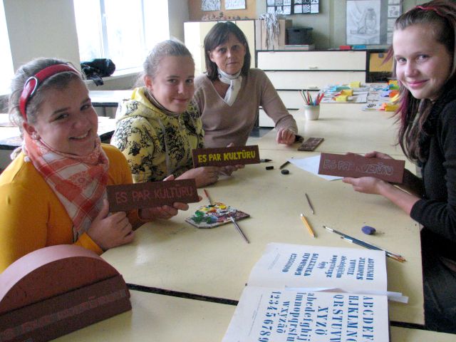 Nu jau pat pusaugu bērnam skaidra valdības nostāja – samazināt budžetā izdevumus par katru cenu, taupot arīdzan uz kultūras rēķina, apvienojot un optimizējot ar mākslas jomu saistītās Valsts augstākās izglītības iestādes. Lai to nepieļautu, piektdien daudzviet Latvijas visdažādākajās ar kultūru saistītajās iestādēs norisinājās akcija «Es par kultūru». Akcija notika arī Kandavas Mākslas skolā, kur audzēkņi katrs savā izvēlētajā priekšmetā kopā ar skolotājiem pauda savu pārliecību par kultūras nozīmīgumu. Apliecinājumu «Es par kultūru» skolēni veidoja kokā, datorgrafikā, mālā, cementa masas un akmentiņu apvienojumā un visdažādākajās krāsās. Gala rezultātu nevarēja nepamanīt, jo krāsains trīs vārdu savienojums uzrunāja katru, kas vēra Mākslas skolas durvis. Arī vestibilā, nodarbību telpās viss vēstīja par akcijas norisi un katra audzēkņa, katra pedagoga līdzdalību tajā. Kamēr rokas čakli darbojās, raisījās arī valodas par kultūras izpratni, tās izpausmēm, par kultūru šodien un nākotnē. "Kultūra ir mana maize un sāls, mani svētki un ikdiena, tā ir manas dzīves daļa. Kultūra man ir nepieciešama tagad un turpmāk" – teikts aicinājumā, un šiem vārdiem pievienojas arī Kandavas Mākslas skolas direktore Ērika Klauberga un šīs radošās skolas kolektīvs.
