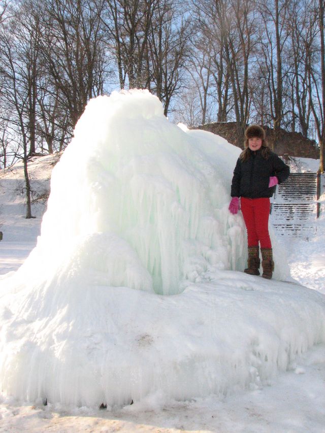 Par to liecina Kandavas Bruņinieku pilskalna pakājē izaugusī ledus skulptūra, kas iepriecina gan vietējos pilsētas iedzīvotājus, gan visus garāmbraucējus. Īpaša burvība pārņem dienas vidū, kad strūklakā rotaļājas saules stari. Tad dabīgie lāsteku veidojumi izgaismojas savdabīgi zaļganīgā toņkārtā. Turklāt ledus krātera virsotnē nemitīgi plūst ūdens urdziņa, skulptūru veidojot jo dienas, jo iespaidīgāku.