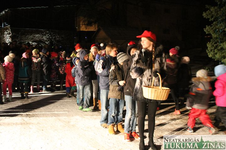 Kandavas promenādē 6. decembrī pirmās svētku rotu ieguva 11 mazās eglītes piekalnītē – katrai novada izglītības iestādei pa vienai pušķojamai zaļsvārcei. Taču lielajai eglei lampiņas kuplā draugu lokā tika iedegtas tikai ar tumsas iestāšanos. Šogad 20 m augsto egli pilsētai dāvināja skolotājs Gatis Frīdenbergs, un tās iedegšanās piedalīties jo īpaši aicināti bija tieši mazākie pilsētas iedzīvotāji.