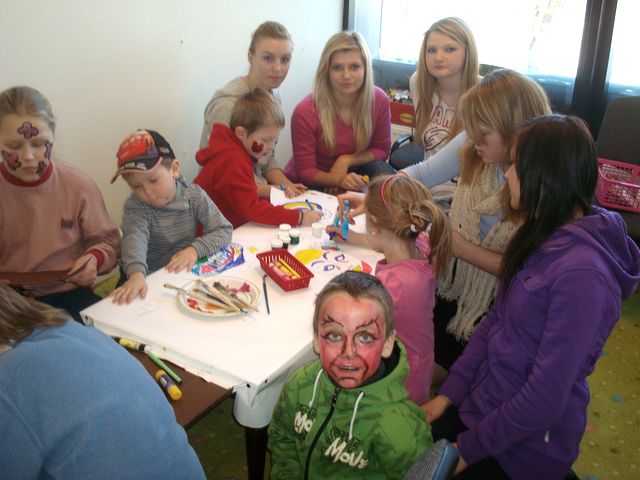 Un tā aizvadītās sestdienas rīts uzausa saulains, un, kā sacīja kāda māmiņa, bērni par mājās sēdēšanu negribāja ne dzirdēt. Jau pirms pusdienlaika «Naglas» vestibilā sāka pulcēties bērni, kas bija gatavi darboties ar papīru, šķērēm, krāsām un ļauties brīnumainām pārvērtībām. Kopā ar Kandavas jaunieša centra «Nagla» meitenēm Ievu Osi, Maiju Bezdelīgu, Kristīni Beniušu, Viktoriju Selezenu un Zitu Vaivodi saules pielietajā, gaišajā tirdzniecības vietas palīgtelpā zumēja kā bišu stropā. Bērniem tika piedāvāti masku trafareti, kas pašiem jaizgriež, lai pēc tam katrs savu masku krāsotu, aplīmētu un izrotātu ar dažādām skaistām lietiņām. Tie, kam masku veidošana nelikās interesanta, varēja veidot enģelīšus, zaķīšus un citas mīļlietiņas, ko pēc tam, protams, ņemt sev līdzi. Tas nemaz nebija viegli, jo izgriestajiem objektiem bija jāpielīmē koka irbulītis, lai veidojumu vieglāk rokā noturēt. Citiem izdevās labāk, citiem – ne tik labi, bet kopā ar lielajām meitenēm pie gala iznākuma nonāca visi. Vislielākā jautrība risinājās brīdī, kad tika sākta seju apzīmēšana. Šai izpriecai bija sagatavotas speciālas sejas krāsas. Pati pirmā mazā modele, kas drosmīgi ļāvās jauno mākslinieču otas triepieniem uz savas sejiņas, bija Beāte – pacietīga un jauka meitene. Arī pārējie bērni, kas sēdās šajā krēslā, bija gan drosmīgi. "Mazais Kārlis teica: "Es gribu, lai tu man uzīmē kaut ko interesantu. Tas nekas ja tev nesanāk, man patiks tāpat,"" vēlāk mazo modeļu atsaucību atcerējās Ieva, viena no «Naglas» meitenēm, pastāstot, ka bērnu fantāzija bija neierobežota un uz sejām, pēc viņu vēlmes tika zīmēti vaisdažādākie brīnumi, sākot ar puķēm, sirsniņām, kaķiem un lāčiem un beidzot ar viscaur sarkanu seju kā mazajiem velniņiem. Pāris pavadītās stundas neikdienišķākā un intriģējošā vidē bērniem patika. Tādēļ Ilzei padomā jau nākošā iecerē – aprīlī kopā ar jauniešiem sarīkot putnu būrīšu darināšanas pēcpusdienu, bet maijā – pārsteigumu māmiņām.