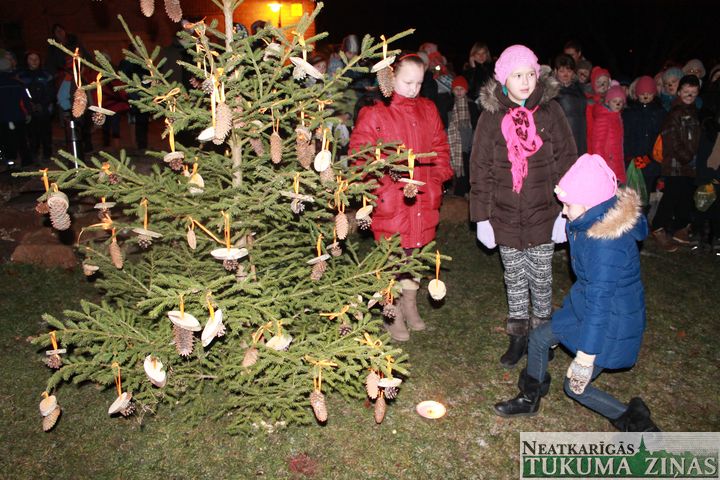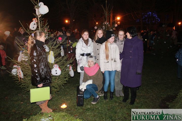 Promenādē katras novada skolas pārstāvji tika aicināti iedegt sveces pie pašu rotātām eglēm – pavisam 12. Šogad šī ir jauna un skaista tradīcija, ko izlolojusi skolotāja un Sākumskolu metodiskās apvienības vadītāja Agita Pētersone. Rosību Promenādē bija pamanījis arī Ziemassvētku vecītis…