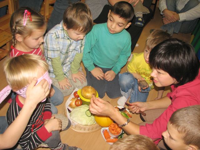 Ludziņas izskaņā prieks bija abpusējs – vecākiem par pašu paveikto, bet mazajiem – par iespēju redzēt un ieklausīties nevis svešu aktieru, bet savu vecāku teiktajā. Turklāt ludziņa bija ar izzinošu raksturu, kas vedināja iepazīt gan sakņu dārzā audzētos dārzeņus, gan uzticama sarga raksturīgākās īpašības. Kad mazie skatītāji pazīstamos aktierus bija samīļojuši, audzinātāja Zinta bērnus pulcināja ap kopīgi sarūpēto dārzeņu grozu, un bērniem, aizsietām acīm, nācās nogaršot un atminēt, kas tas ir? – gurķis, ķirbis, kabacis… vai kāposts. Kad mazie, kā nu kurš, ar uzdevumu bija tikuši galā, pārbaudījumu veikt nācās arī vecākiem. Tiesa, viņiem veicās labāk, pat sīpolu izdevās veiksmīgi degustēt.