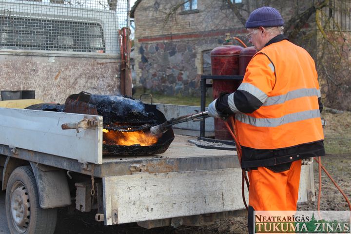 Par darba norisi pastāstīja darba vadītājs Uģis Nīcinieks: no sākuma bituma masa (remontasfalts) tiek uzsildīta, tad to esot vieglāk ieklāt un sablīvēt. Tad jau iepriekš sagatavotā bedrītē (izslaucīta no putekļiem un smiltīm) šī masa tiek iebērta. Labotas šādā veidā tiek tikai avārijas bedrītes – tās, kas ir dziļākās. Seklās šādā veidā neremontējot, tas tad būtu nelietderīgi iztērēts materiāls, jo remontasfalts seklās bedrēs ilgi neturas. Pēc tam, kad masa ir iebērta bedrītē, viss materiāls tiek sablietēts tā, lai tas būtu līdz ar asfalta pamata segumu. Šādā veidā salabotas bedrītes turas līdz pavasarim, kad tās tiek pielabotas ar piķa emulsiju. Llāpījums esot stabilāks un ilgāk kalpos.